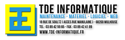 En application de la réglementation Informatique et libertés, toute personne dispose d’un droit d’accès, de rectification, d’effacement, de portabilité et de limitation du traitement, appliqué à l’ensemble des données la concernant. Ce droit peut être exercé par courrier électronique à l’adresse suivante : contact@tde-informatique.fr ou par courrier postal à l’adresse suivante, Société TDE Informatique – 18 rue de Soultz – 68200 MULHOUSE, accompagné d’une copie d’un titre d’identité signé.